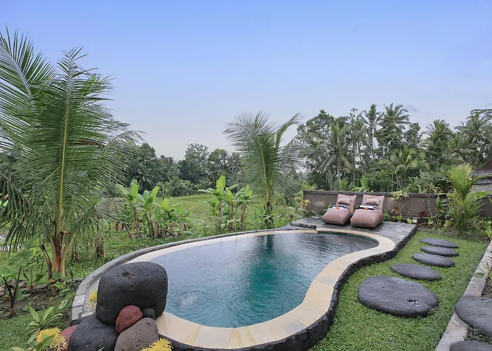 The 1-bedroom Blusung Mesari Villa Ubud is located within a 10-minute drive of Bali Pulina and offers guests to enjoy their evening on a terrace with a swimming pool. Featuring bicycle rentals, the villa invites guests to visit Karsa Spa, situated 2.1 miles away.